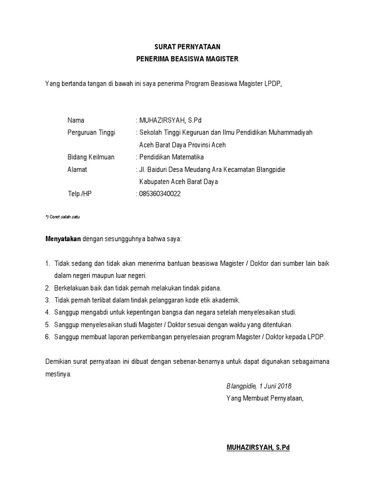 Surat Pernyataan Calon Penerima Kip K Unmul